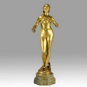 A delightful Art Nouveau early 20th Century gilt bronze figure of a very beautiful naked lady, the surface of the bronze exhibiting excellent detail and finish. Raised on a shaped onyx base and signed Antonin Carles