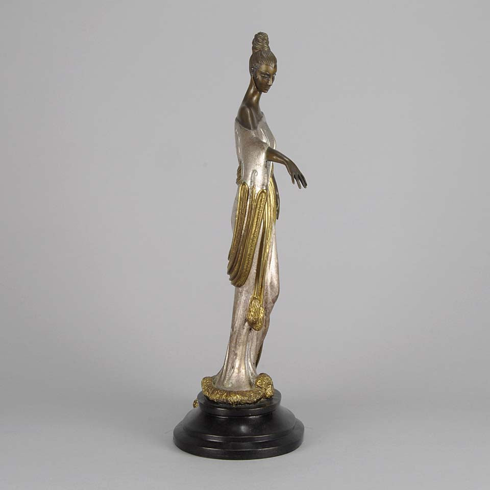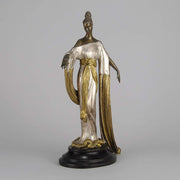 A striking limited edition bronze figure of a beautiful young woman in a glamorous fitted gown, with a theatrical headdress representing a constellation of stars. The figure raised on an integral plinth. Signed Erté, dated 1987 and numbered 87/375 with Meisner foundry mark.