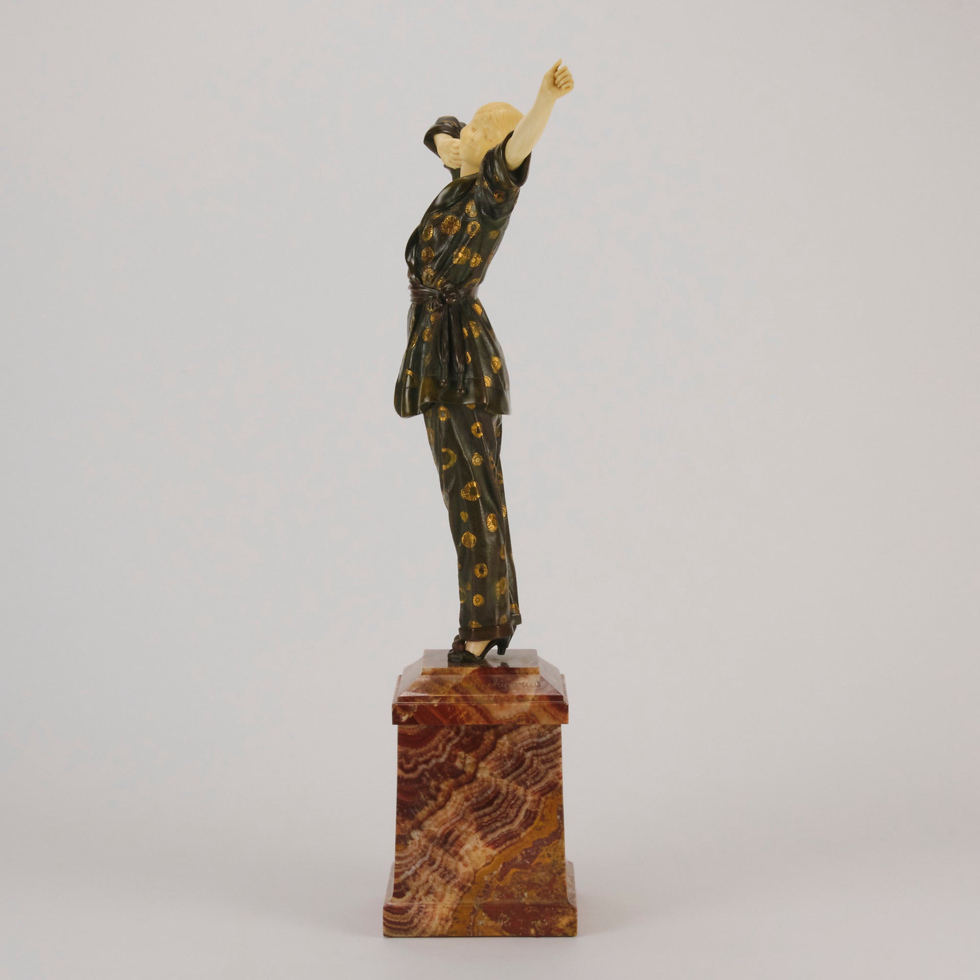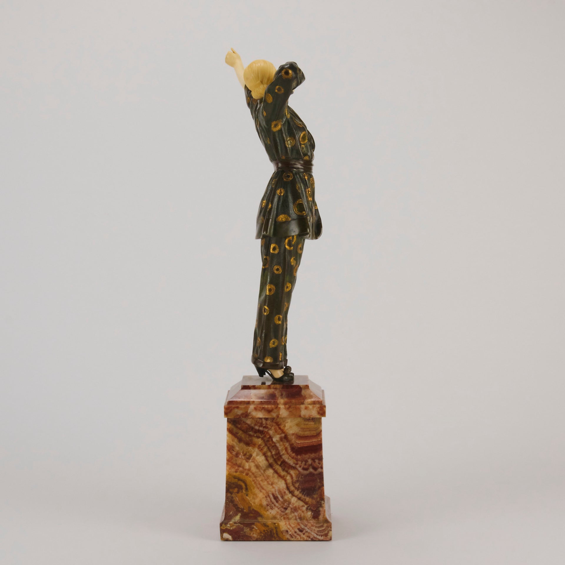 Chiparus’s early figures, those on a relatively simple bases, were primarily cast by Etling, a Paris foundry the retailer of contemporary French decorative arts in the 1920s and 1930s. The later pieces were made by the Les Neveux de J Lehmann foundry which specialised in making the more elaborate marble and onyx plinths.