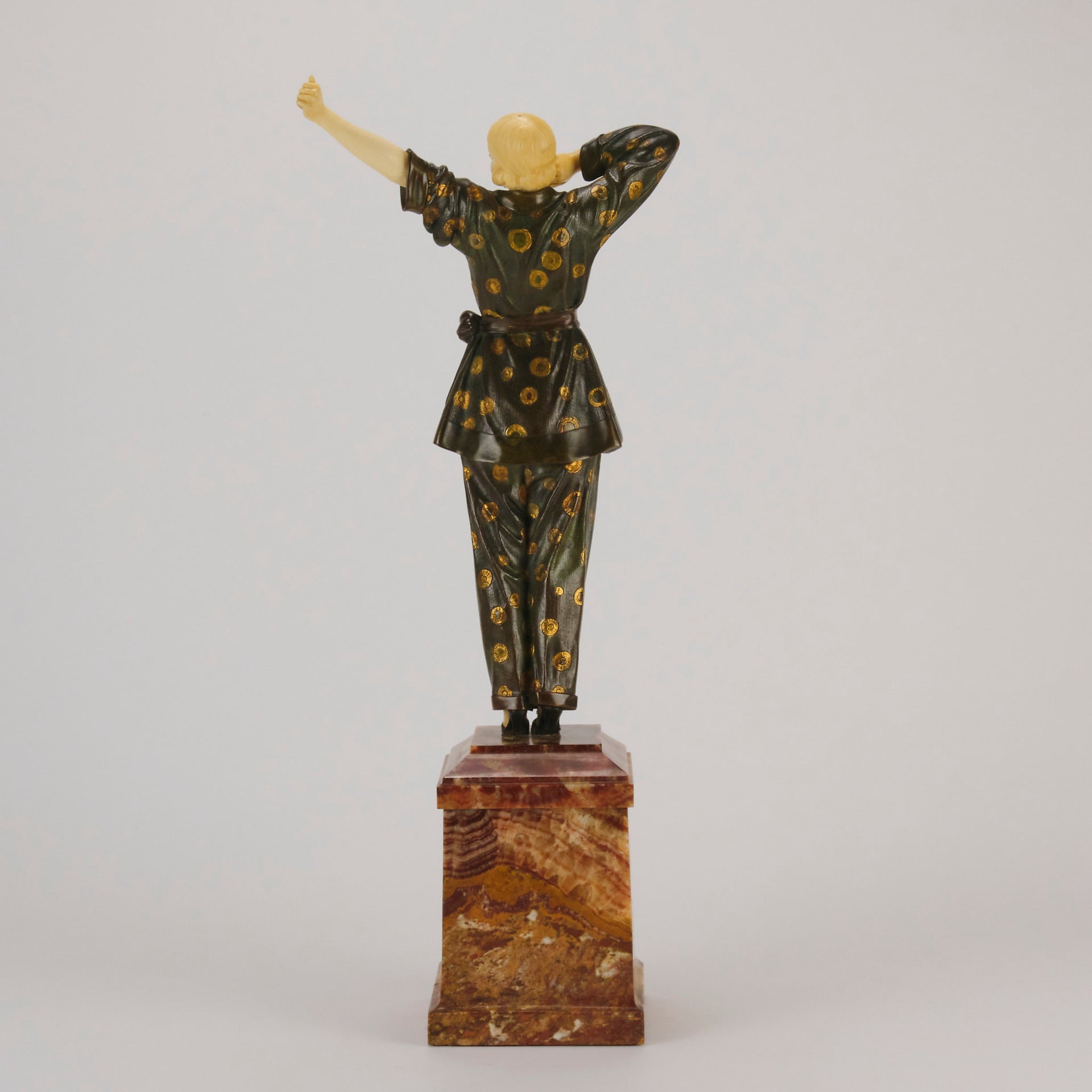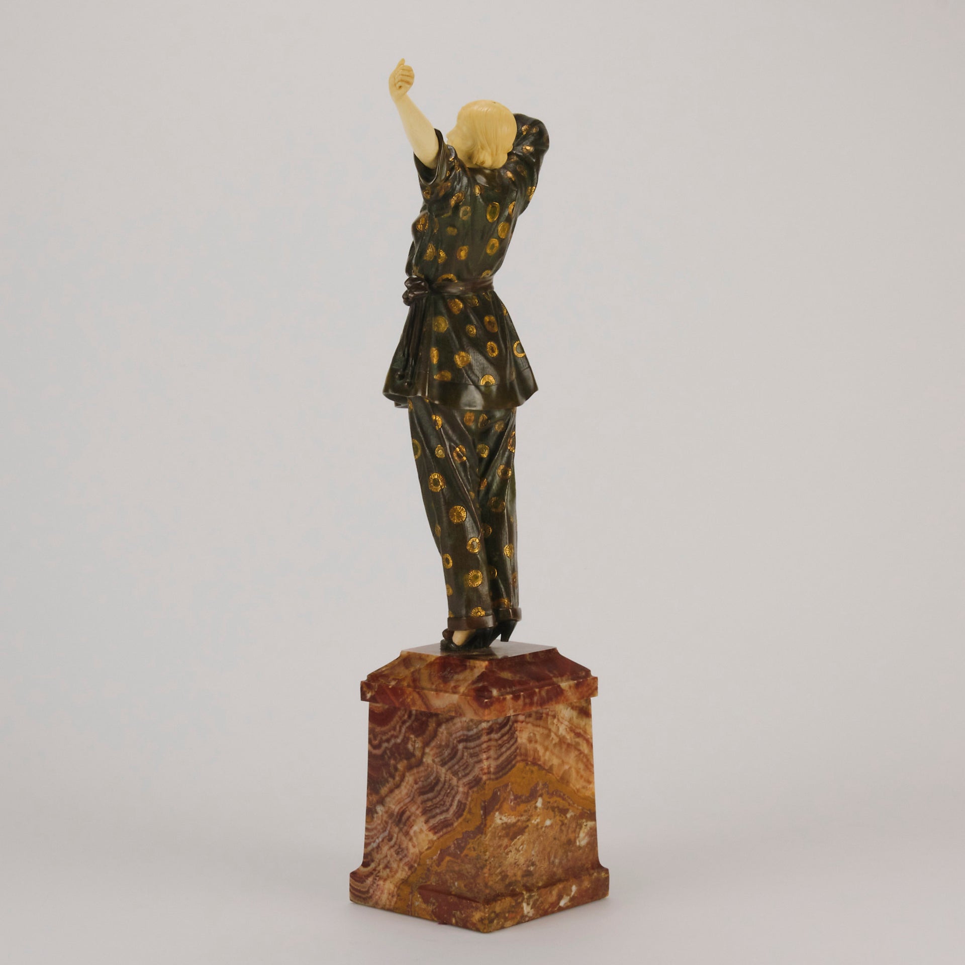 Romanian by birth, Chiparus worked entirely in Paris, first exhibiting in the Salon of 1914. He is best known for his figures or exotic dancer made of carved ivory and highly worked bronze. The subjects of these chryselephantine works were taken from popular personalities of the day, from contemporary theatre characters and the Orientalist zeitgeist in Paris in the interwar years, as exemplified by Diaghilev’s Ballets Russe.