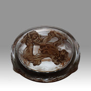 Commissioned for the Coty Co. perfumery, originally made for the fragrance L'Origan in 1914, and later for the fragrances Emeraude and Chypre De Coty
