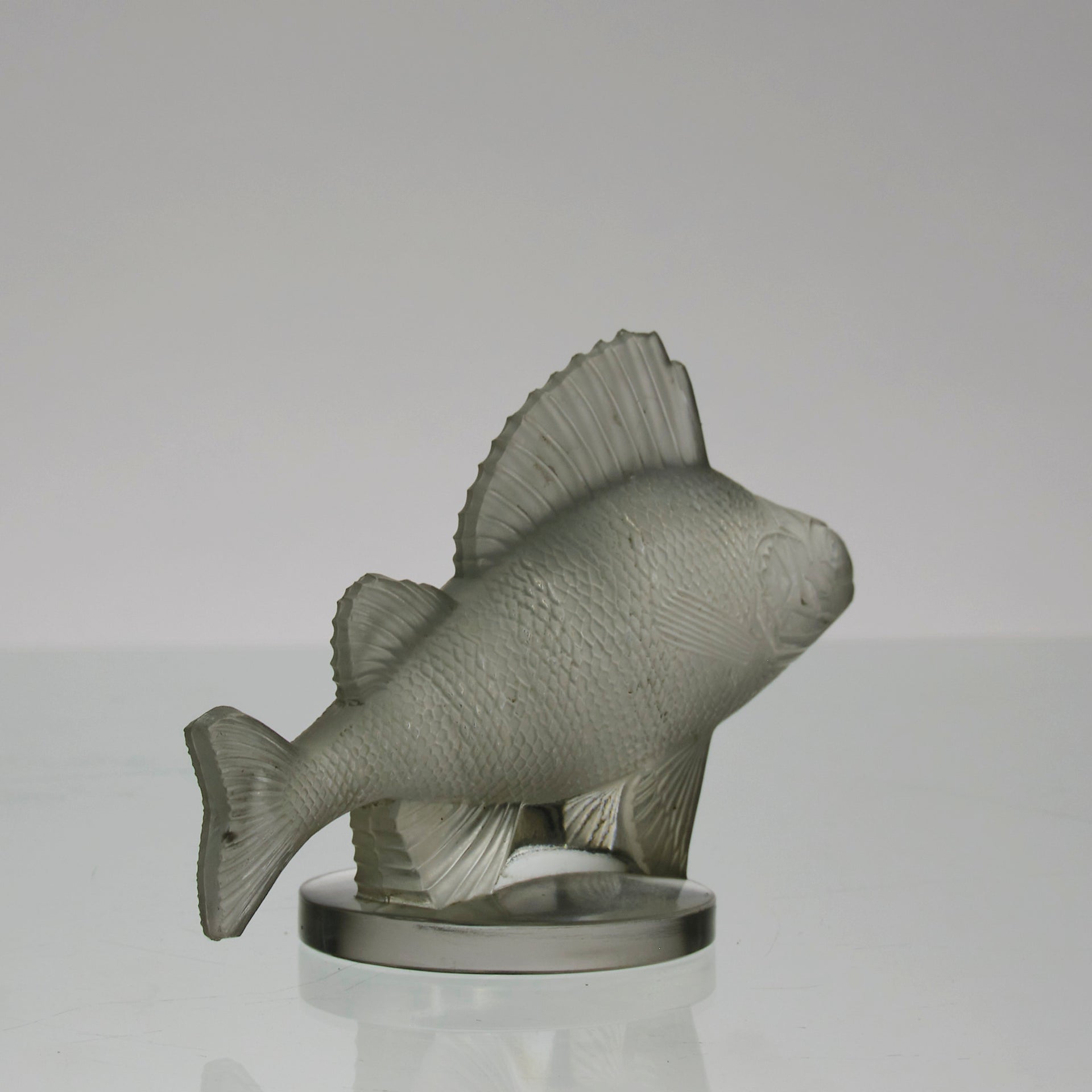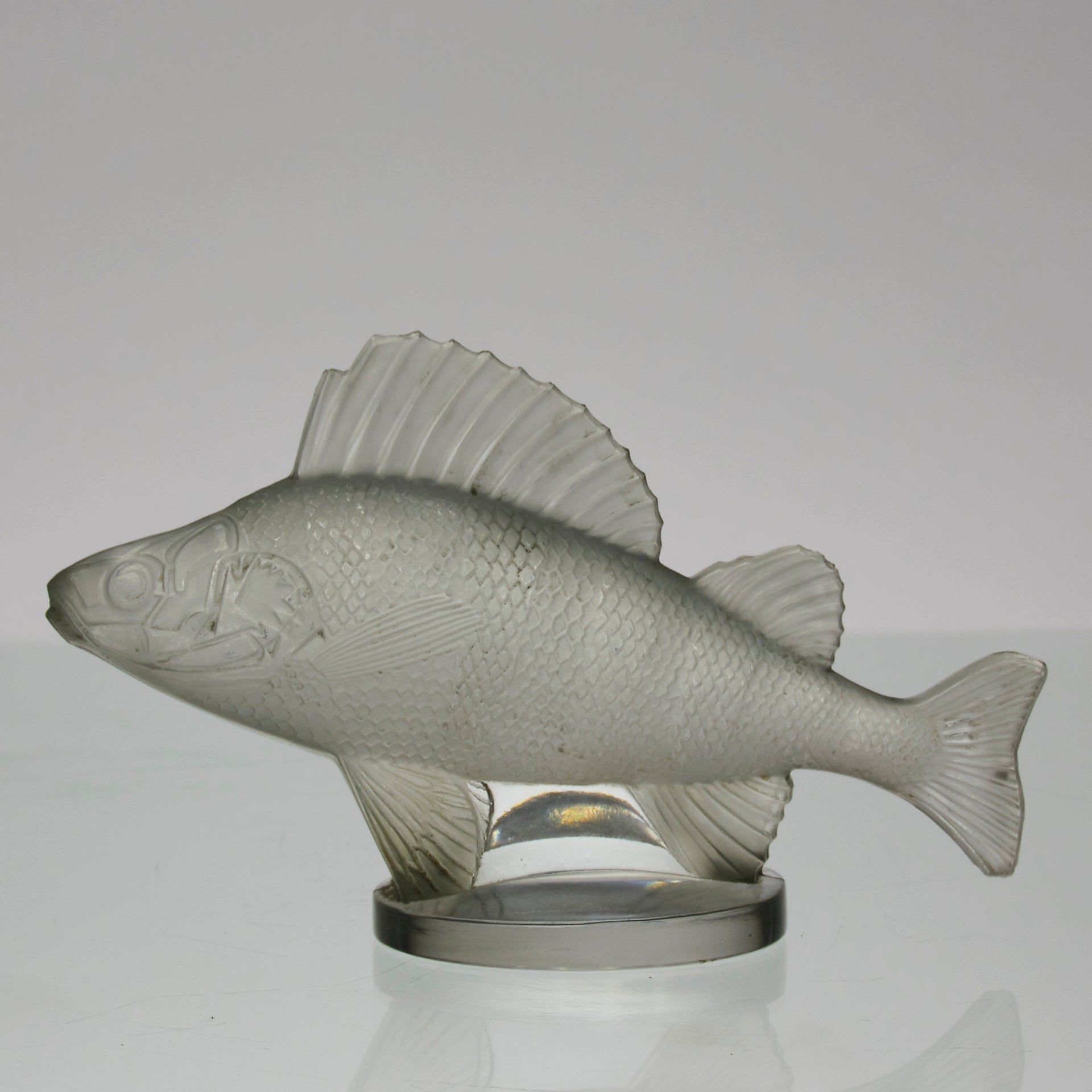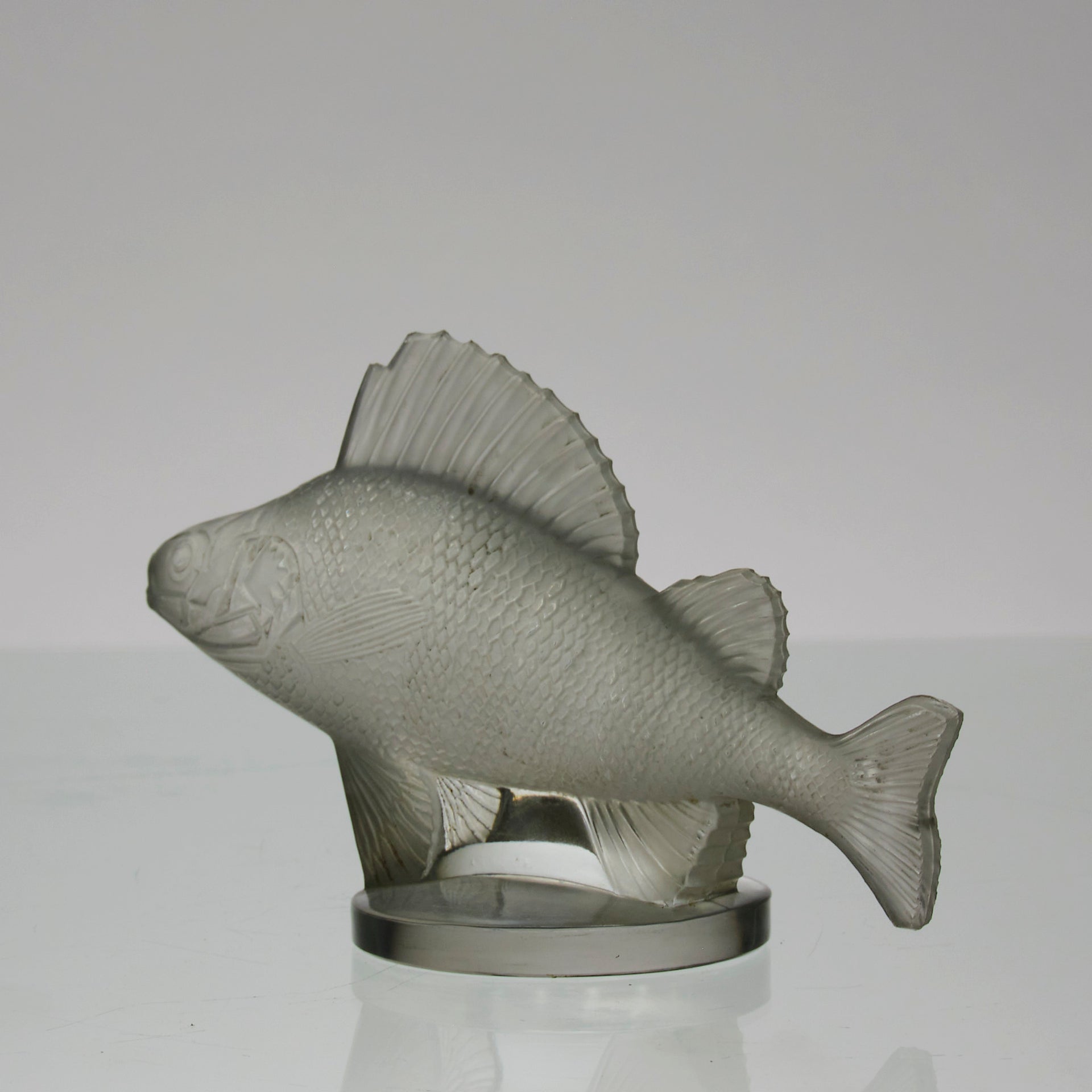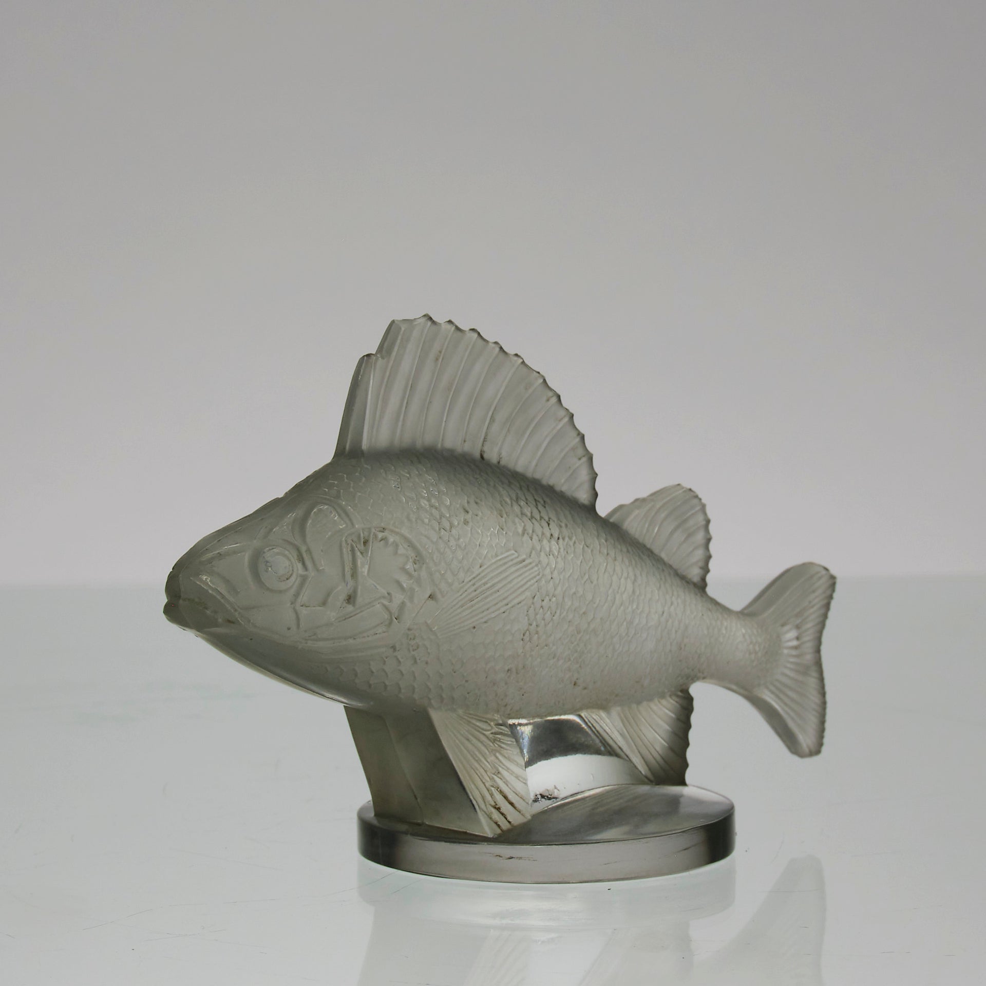 Wonderful early 20th Century Art Deco frosted and polished glass car mascot modelled as a swimming perch with excellent hand finished surface detail, signed R Lalique - France