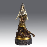 Théodore Louis Auguste Rivière (French, 1857~1912) Théodore was a French sculptor born in Toulouse. He received traditional training at the School of Fine Arts in Toulouse and at the National School of Fine Arts of Paris. He began his career under the influence of Falguière and Mercié. He worked in bronze and bronze & ivory in the Art Nouveau and Art Deco style. For a time Rivière lived in Carthage, where he completed his two Orientalist groups based on Flaubert’s story of Salammbô, exhibiting them at the 1894 and 1895 salons with great success.