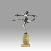 Although very little is known about Lorenzl’s early life we are aware that he was born in Austria in 1892 and was soon to become one of the most talented sculptors of the Art Deco Period. He started by working for a bronze foundry in Vienna Arsenal where he produced stunning Art Deco bronze statuettes. The majority of his works in bronze and ivory were of singular slim female nudes with long legs which conveyed elegance. His preference was for dancing poses which were not only evident in his singular statuettes but also in those attached to marble clocks, lamp bases and bookends.