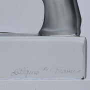 Impressive mid 20th Century clear and frosted glass figural study of an African elephant with its trunk raised. The surface with fine detail, signed Lalique France