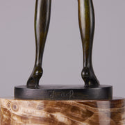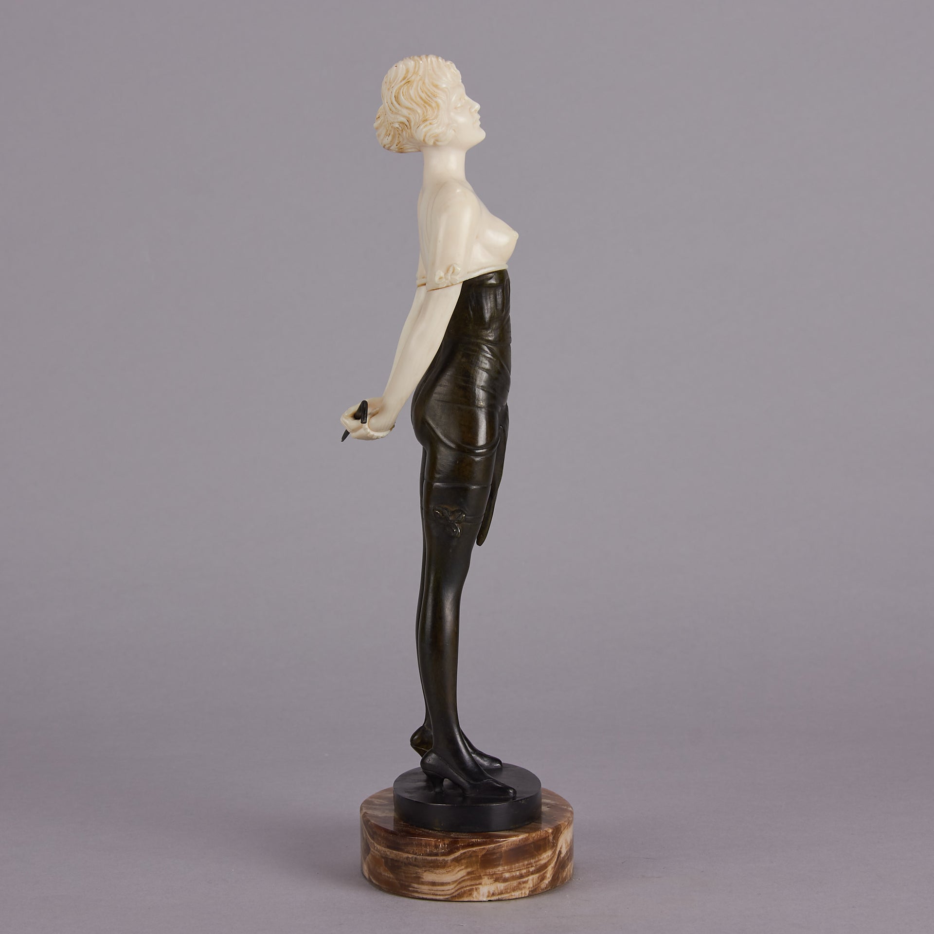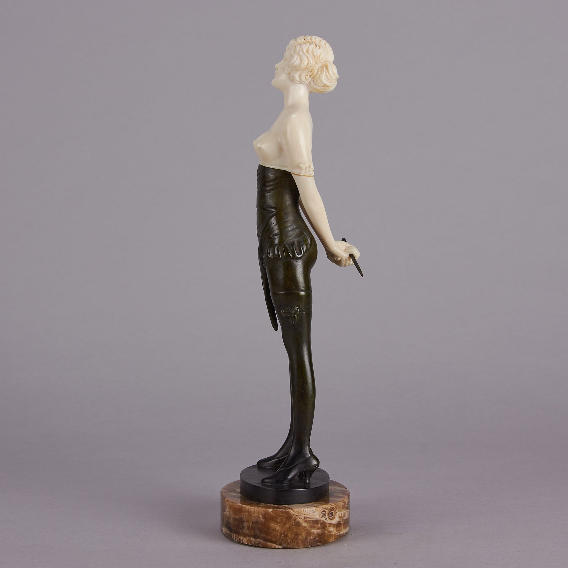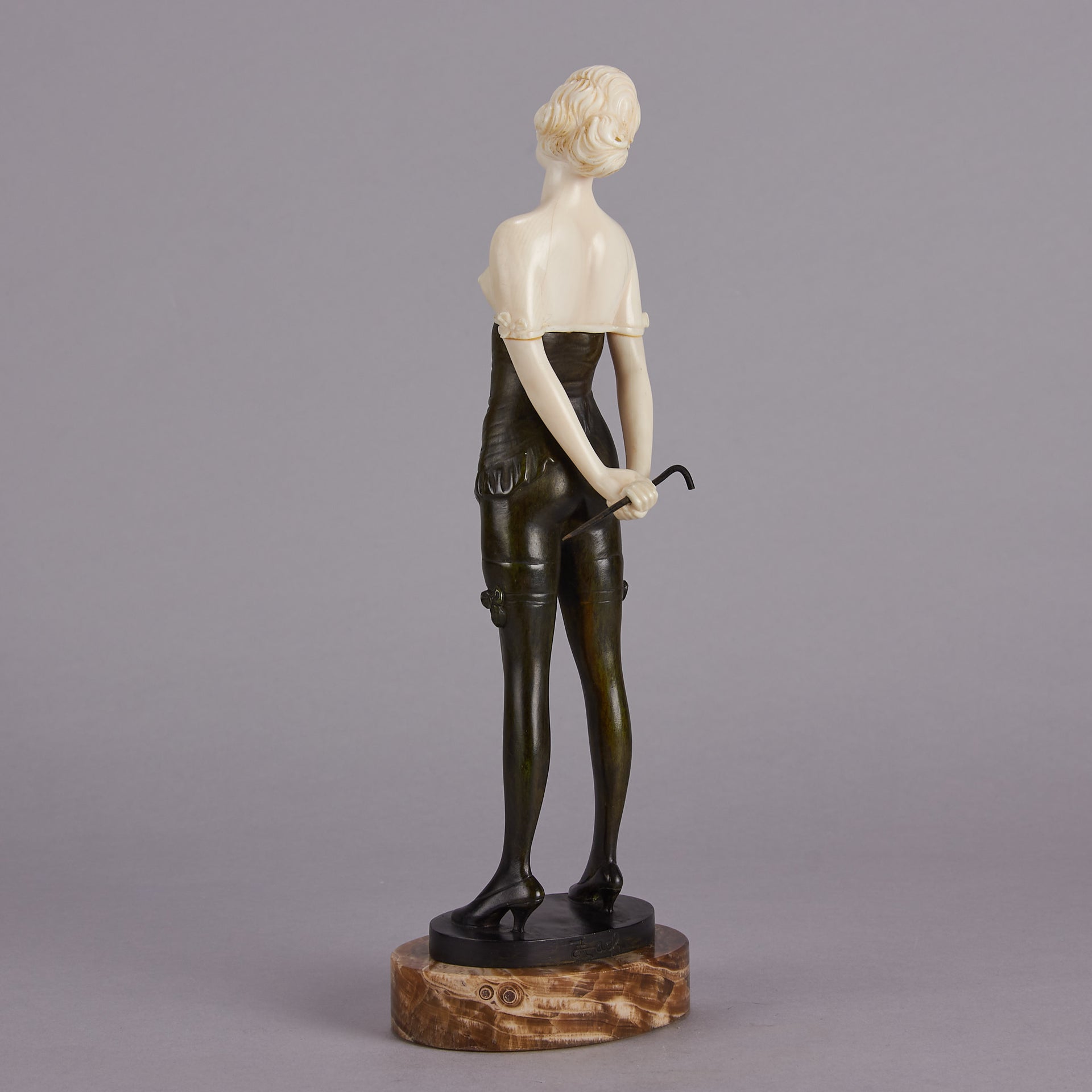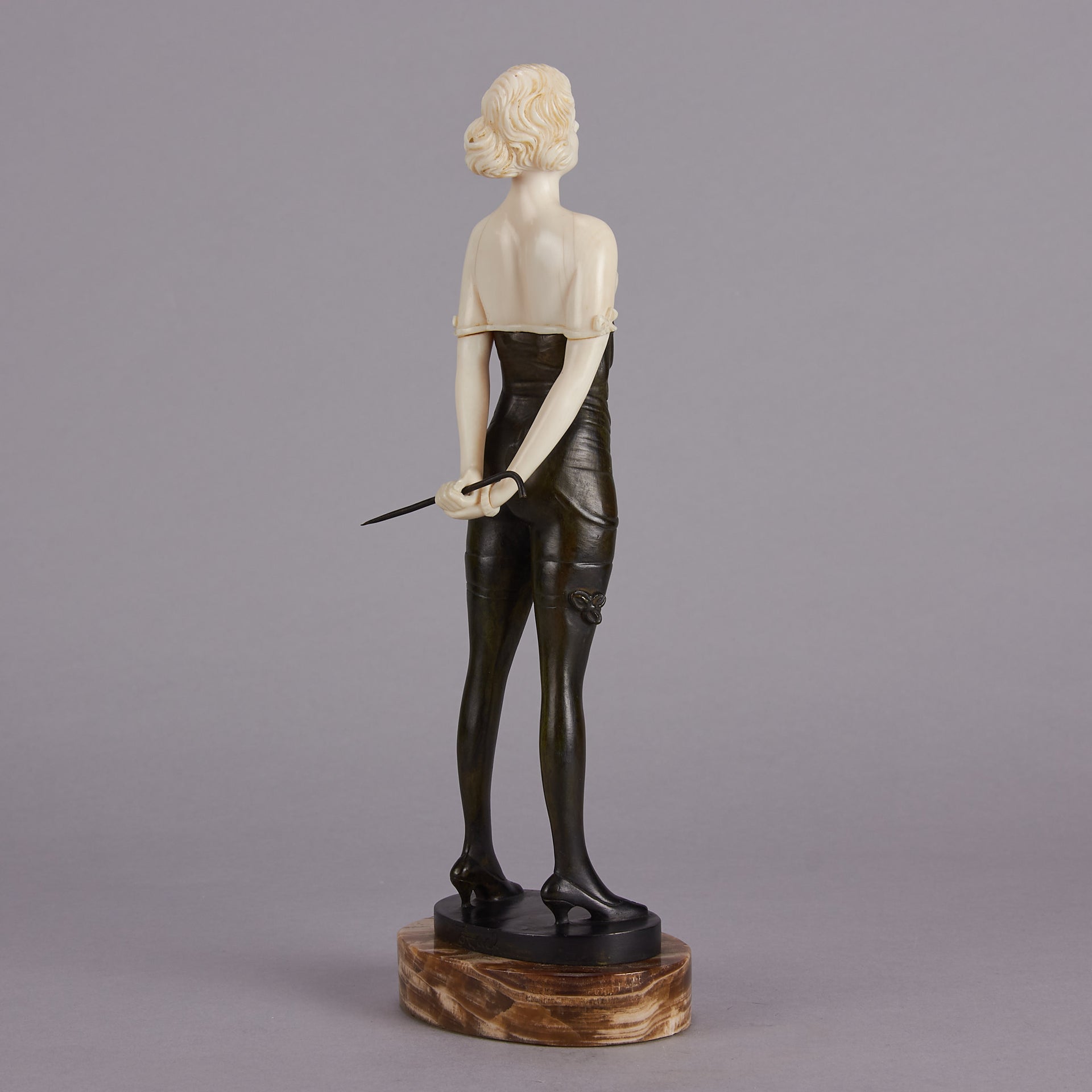 Zach Riding Crop – Bruno Zach (Austrian, 1891 – 1945) – Bruno Zach was a prolific creator of tall, athletic, independent women in bronze and ivory. He depicted both the healthy outdoor pursuits, and also the dream mistresses of the demi monde of Berlin, Paris and Vienna between the wars. His bronze is occasionally patinated, most often cold painted. His use of ivory is spare and always well carved. His work was edited by several firms, including Argentor-Werke of Vienna the Broma Companie, S Altmann & Co, and Bergmann.