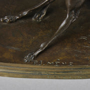 P J Mene is probably the best known of the French Animaliers School and his bronzes are today among the most highly prized in this genre. Surrounded as we are by disturbance and even violence, collectors of his work can find relaxation and enjoyment in contemplating the innate grace and beauty of his sculpture.