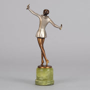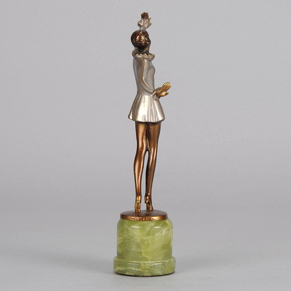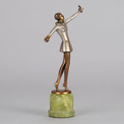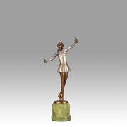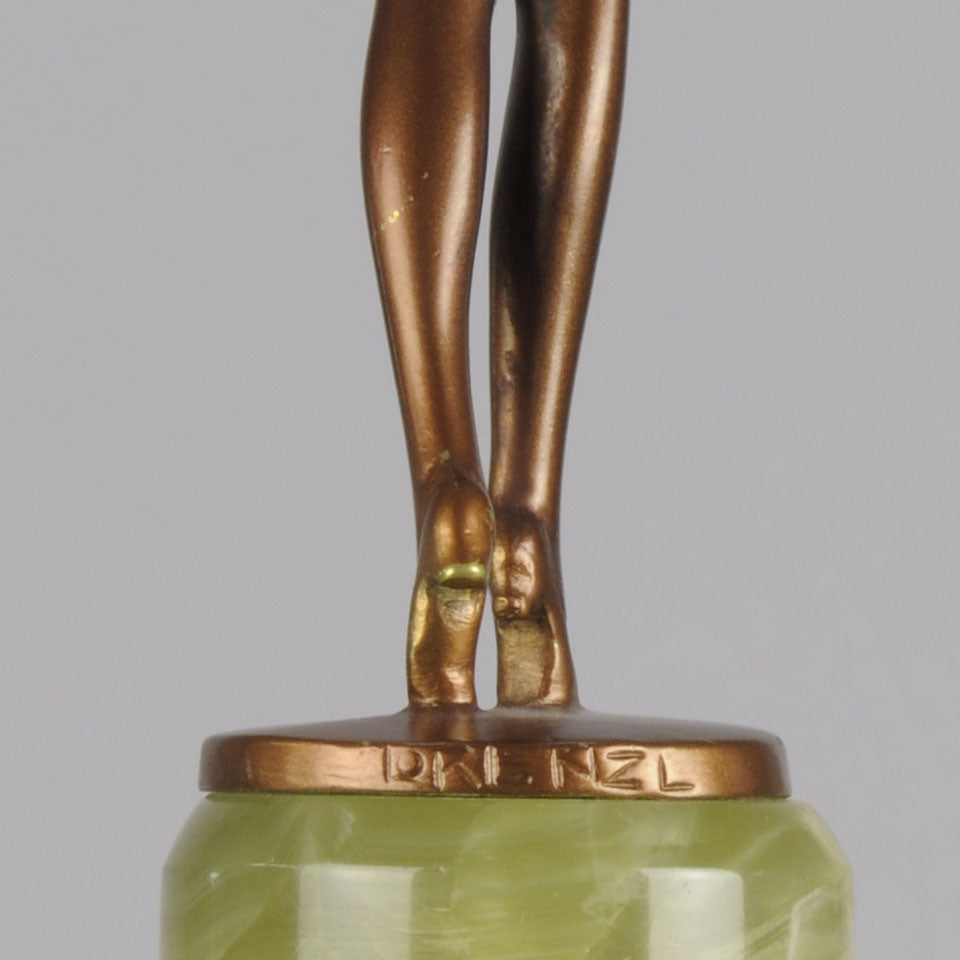 Although very little is known about Lorenzl’s early life we are aware that he was born in Austria in 1892 and was soon to become one of the most talented sculptors of the Art Deco Period. He started by working for a bronze foundry in Vienna Arsenal where he produced stunning Art Deco bronze statuettes. The majority of his works in bronze and ivory were of singular slim female nudes with long legs which conveyed elegance. His preference was for dancing poses which were not only evident in his singular statuettes but also in those attached to marble clocks, lamp bases and bookends.