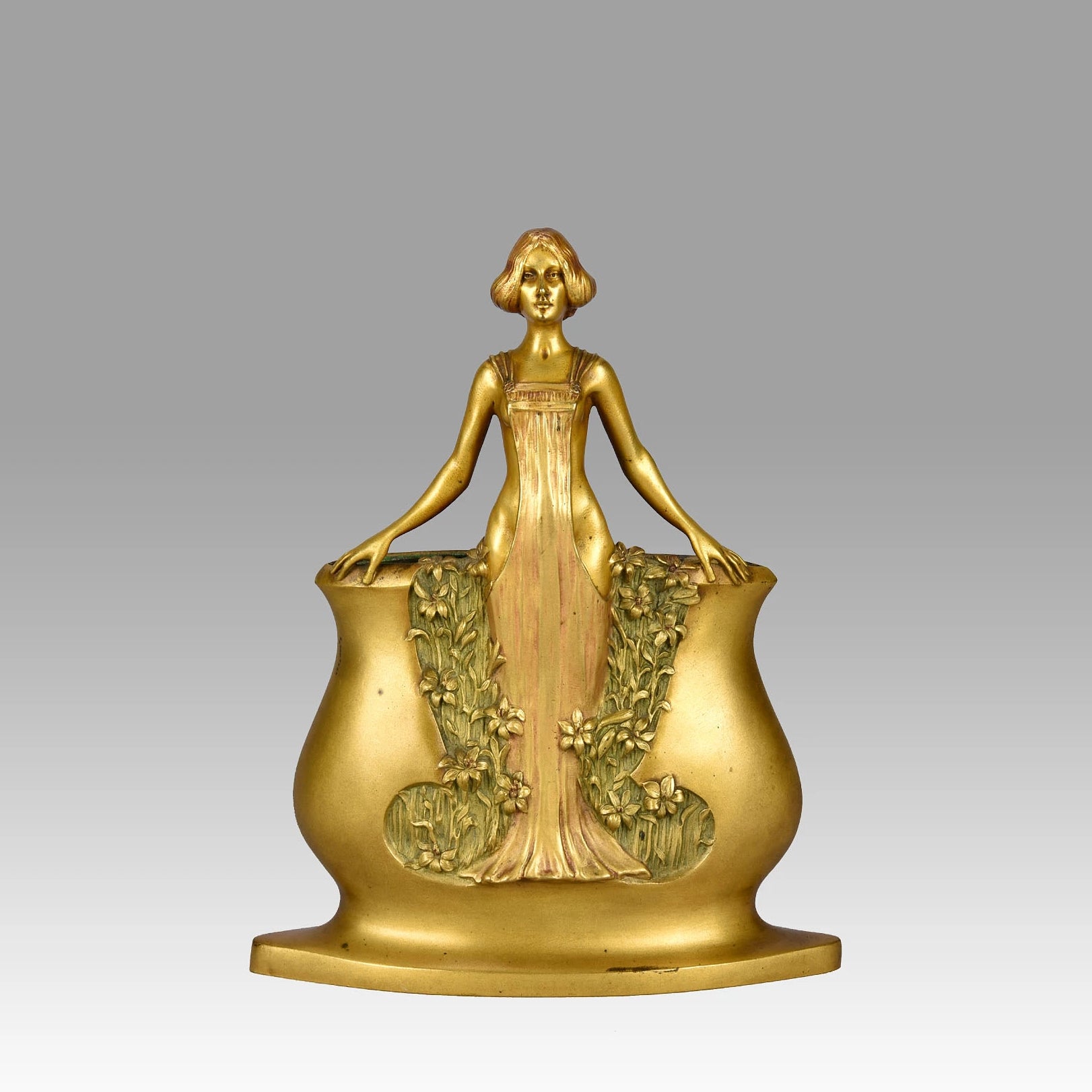 The Art Nouveau style of sculpture began as a French phenomenon, a demonstration of wealth looking for the latest ways to furnish homes. The Art Nouveau style was exploring themes such as nature, symbolism and the adoration of the female form. Art Nouveau sculptors broke away from the classical forms of sculpture that had been taught at the Ecole des Beaux Arts in Paris and started to create sensuous figures and busts of naked or semi-clad maidens entwined with flowers and dancing with lucid eroticism.