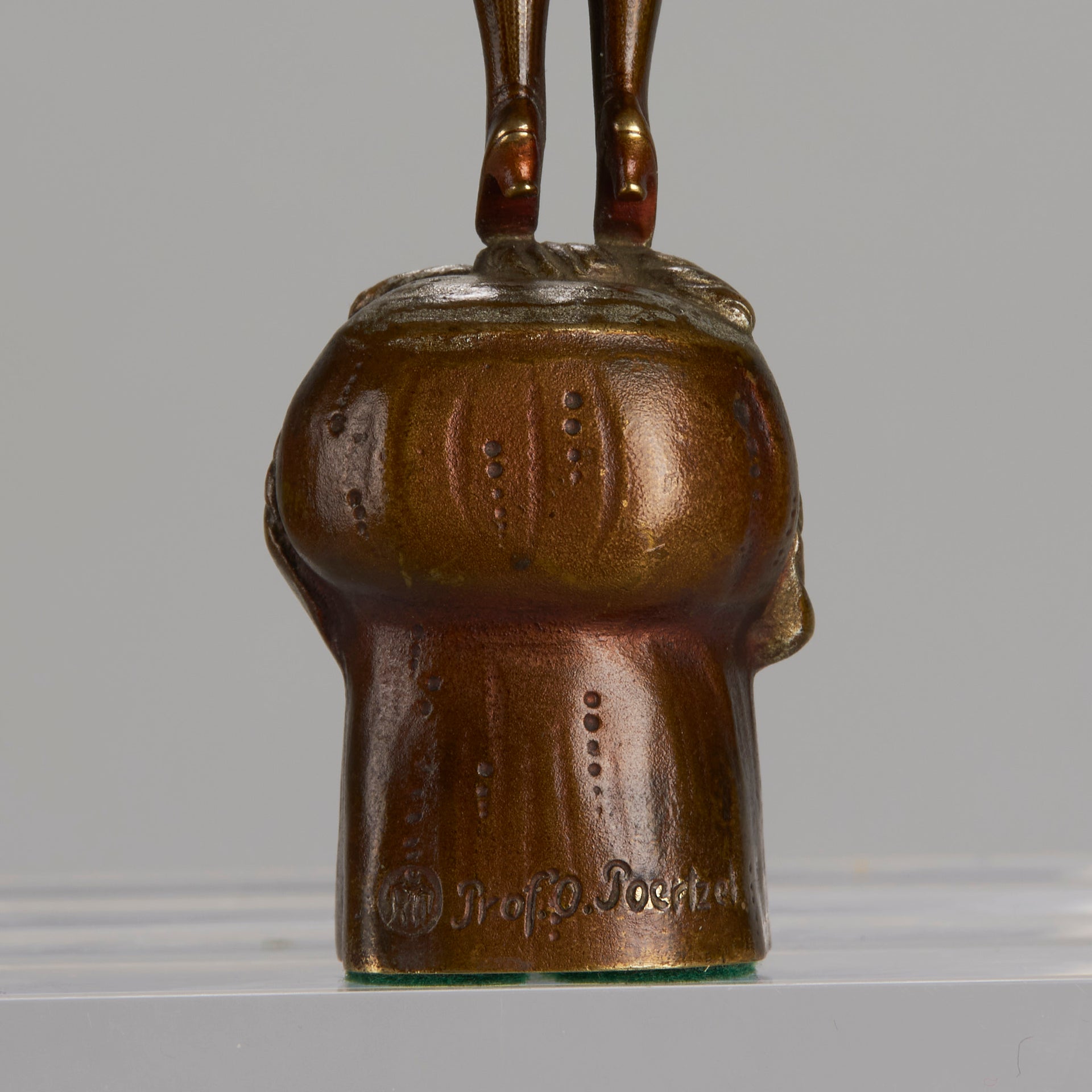 Otto Poertzel (German, 1896 ~ 1963) Poertzel was born the third child of William G. Poertzel and his wife Emilie J. Candida. He attended elementary school in disk and later had private lessons with Kantor Secures and pastor Henkel. The local porcelain factory AW Fr. Kister took him on as an apprentice, initially for one year in the mold and then a further one and half years in the studio for the production of new models, where he was trained as a porcelain designer. His father was already a designer for porcelain sculptures. As of October 1, 1893 Otto Poertzel spent three years studying at the Technical Academy of porcelain in Sonneberg (Sonneberg Industrial School) at Reinhard Möller. There was a short activity in the studio G. wheelwright in Gotha, where he worked on drafts and designs of new models for various industries. From 1900 Poertzel worked as a freelance sculptor in Coburg. He received orders for stone and bronze sculptures by state and municipal authorities, creating, for example, in 1907 the bust of Alexandrinenbrunnens. In 1908 he went to Munich, where he owned his own studio and at the Art Academy in Erwin short (1857-1931), a student of Adolf von Hildebrand was learned. On June 23, 1909 he married Henny Breyding in Munich and had built in 1910 in the hills road 8 in Coburg a villa with a studio. Otto Poertzel participated in numerous international art exhibitions with factory models, such as the St. Louis World’s Fair (1904) and at the Brussels International Art Exhibition (1910). In the 1920s and 1930s Poertzel received numerous commissions for portrait busts of various family members of the family of Saxe-Coburg and Gotha. From 1931 to 1938 he worked for the Max Roesler fine earthenware factory in Rodach. The work of Poertzel are with very good results can still be found around the world commercially. Poertzel became one of the most prominent sculptors in Germany and was for many years under the special protection of the Duke of Saxe-Coburg- Gotha who gave many commission orders. Many of his earlier works were to be found in the salons of German Royal Courts and a few of the most beautiful were purchased by the late King of Bulgaria. It is possible that the confusion between this artist and Ferdinand Preiss is due to the fact that their work is similar in many respects, which in turn may be due to their sharing a studio in Berlin.
